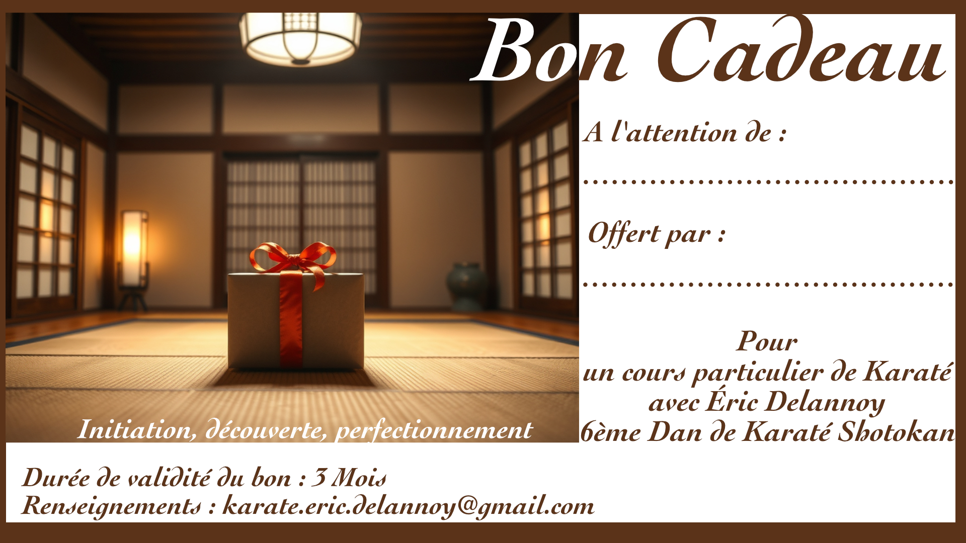 Offrez un cours particulier de Karaté avec Éric Delannoy à vos amis et à vos proches.