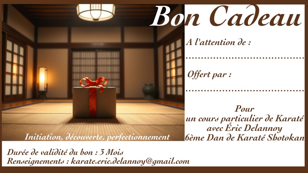 Vous cherchez une idée originale pour surprendre vos proches ? Pourquoi ne pas offrir un cours particulier de Karaté en cadeau ? Que ce soit pour un débutant curieux ou un pratiquant passionné, cette attention est à la fois unique, personnalisée et pleine de sens.
